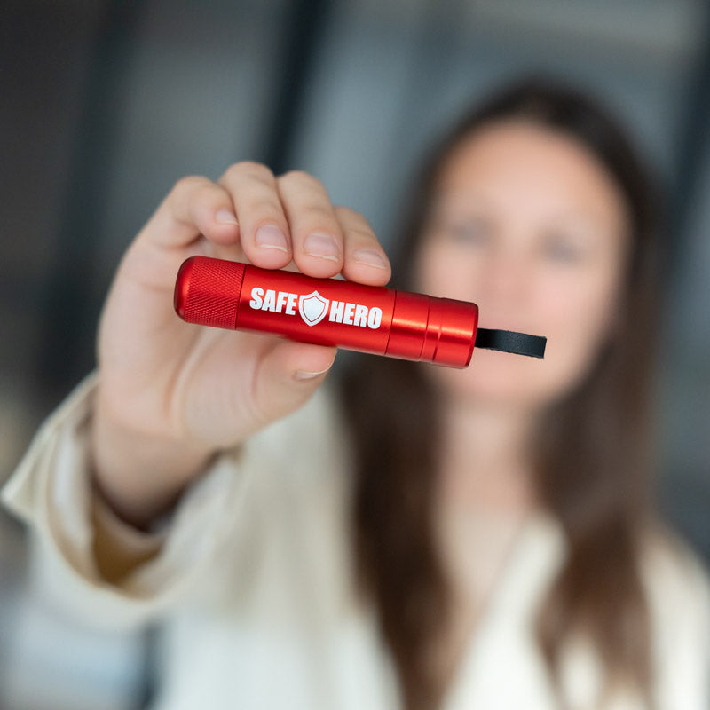 Yes. The Flash Hammer isn’t activated by a button or a light tap—it requires a firm push against a hard surface to trigger the mechanism. This makes accidental use by small children very unlikely. For extra safety, we recommend storing it in the front of the car, such as the glove box or center console—out of reach of children, but easy to access in an emergency.